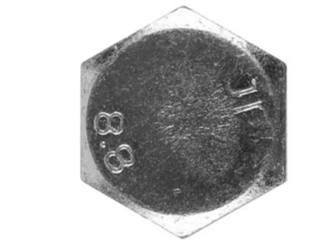 Болты маркируются на торцевой поверхности головки, тиснения могут быть выпуклыми либо заглублёнными и включают в себя следующие значения: