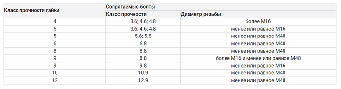 Обратите внимание, что гайки высших классов прочности чаще всего легко заменяют гайки низших классов прочности. Но не наоборот! Взять гайку попрочнее разумно в случаях, когда предполагается наличие нагрузки выше предела текучести.