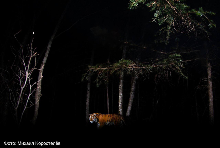 Снимок Михаила Коростелёва «Ночной дозор», запечатлевший амурского тигра в диком лесу «Земли леопарда», стал победителем фотоконкурса «Золотая черепаха» в номинации «Заповедная Россия».
