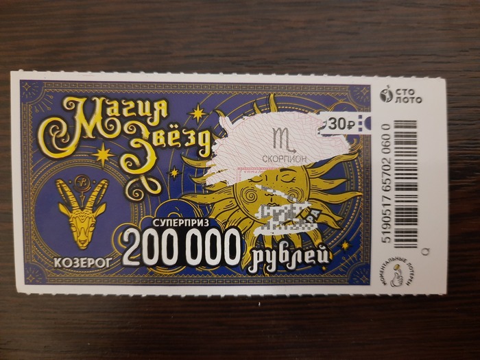 Все же знают, что попытки выиграть в лотерею крупную сумму обречены на провал? И я всегда знал, но на 29-м году жизни то ли из-за деградации мозга, то ли просто со скуки решил подарить пару сотен рублей великому по масштабам деятельности лотерейному концерну. Кстати, по некоторым данным, в 2023 году россияне спустили на лотереи около 400 миллиардов рублей..)) Итак, в ближайшем жёлтом киоске купил 3 билета моментальной лотереи "Магия звезд" и 2 "Тутанхамона" (это чучело точно стоило обходить стороной!). Вот так выглядели эти красивые бумажки, которые, по моему мнению, должны были принести мне удачу и баснословный выигрыш.