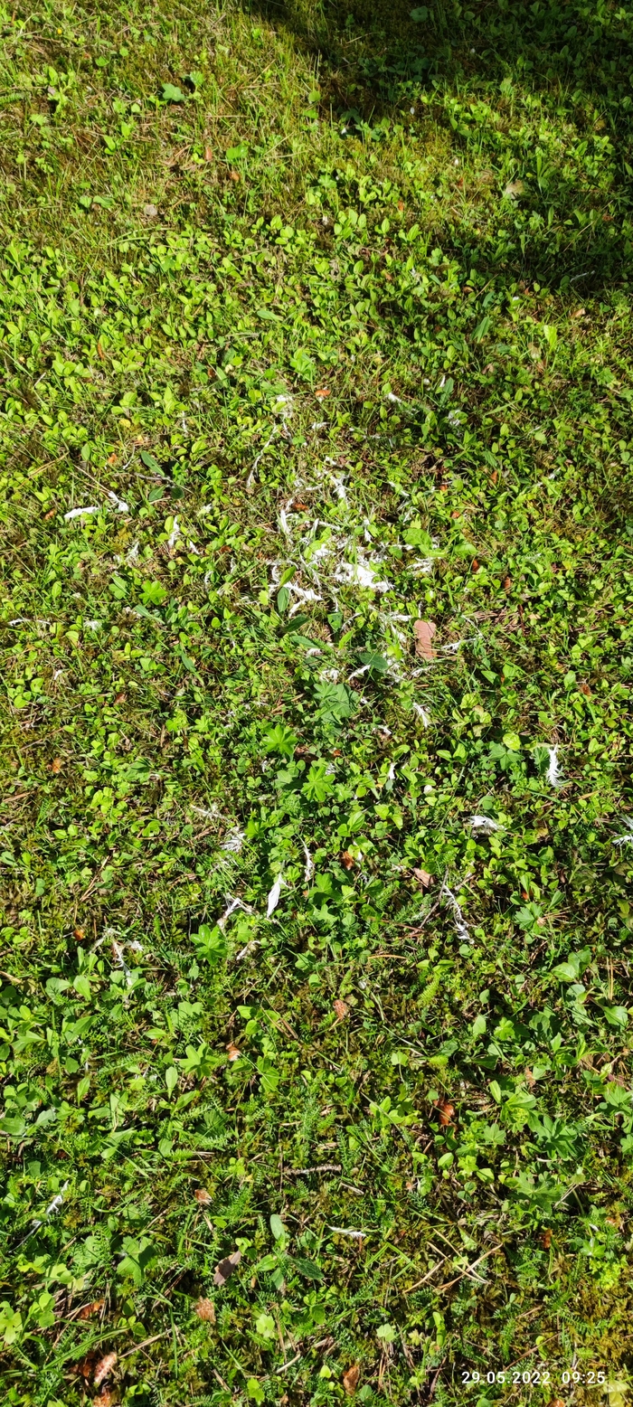 Для примера, вот место где недавно этот же кот разделал голубя: