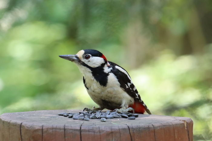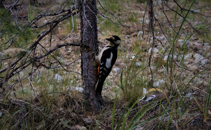 Большой пестрый дятел. Как я понимаю, на первом фото совсем молодая особь.