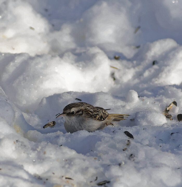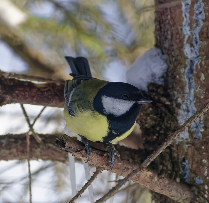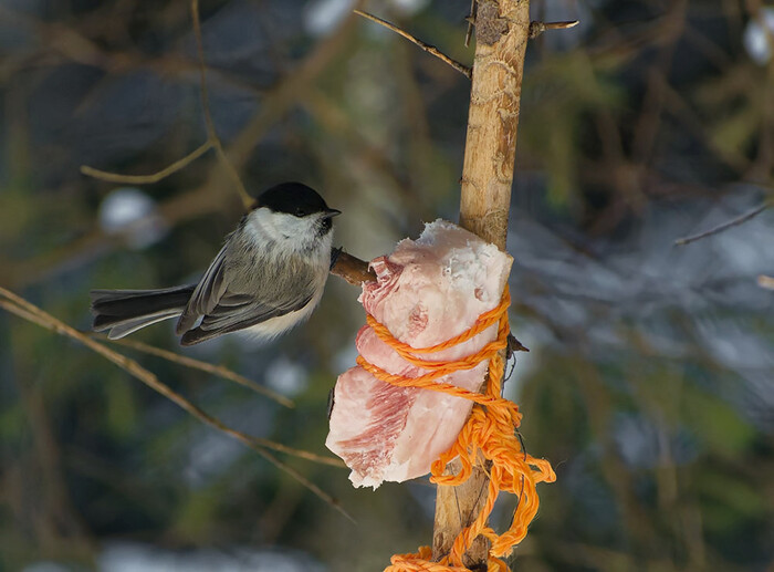 Активность давала Чуча. Даже раскопала в сугробах себе берлогу. А потом мы вернулись туда, куда я присобачил кормушку. А там в полную мощь заработала воздушная дорога жизни. И сложились очень хорошие условия по свету. Синицы оторвались на кормушках, а я на синицах.
