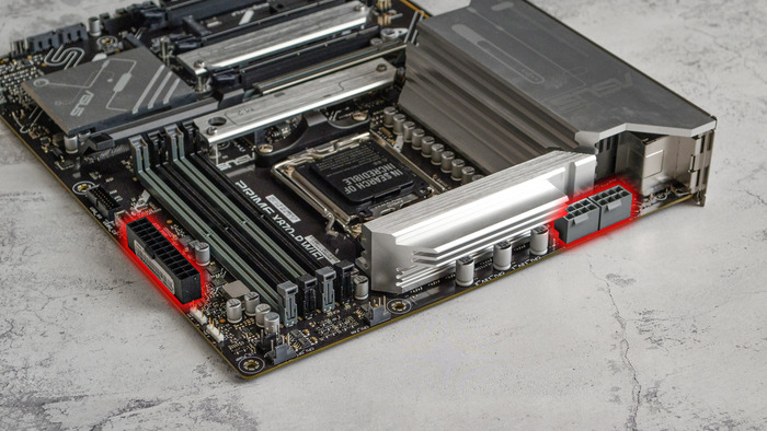 Питание платы ASUS Prime X870-P WIFI подводится 24-pin коннектором и дуэтом коннекторов 8-pin для питания процессора.