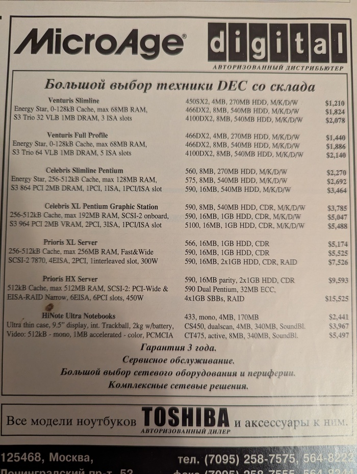 Цены на PC на 95 год, да все в долларах из-за нестабильной валюты. Не помню уже тогда пошли в обиход цены в У.Е. (условные единицы) привязанные к курсу доллара