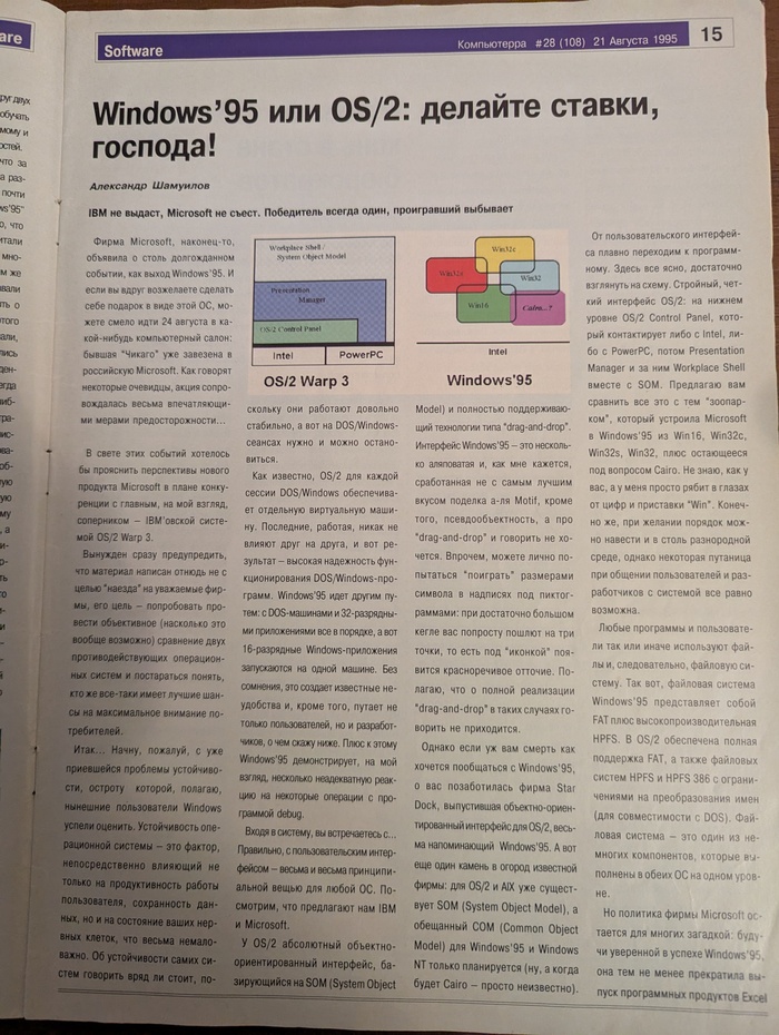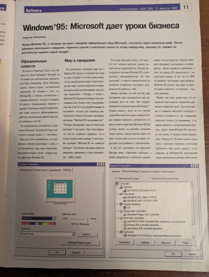 Наткнулся тут сегодня на такой журнал от 21 августа 1995 года. Посвящен выходу Windows 95 которая как известно вышла 24 августа 1995 года Аж 30 лет прошло...