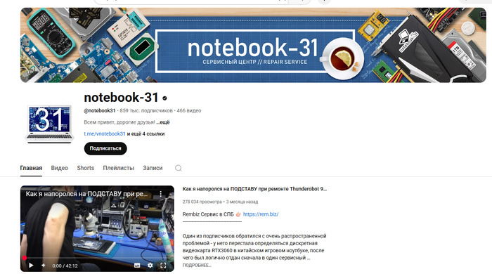 А вот канал ноутбук 31 - порадовал меня кринжом с тем как мастер ремонтирует ноутбуки..