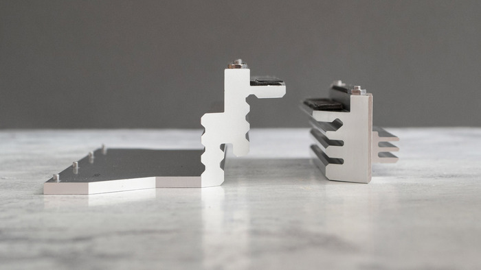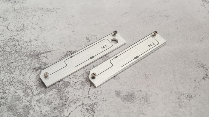 Теплоотводов для M.2-накопителей производитель пожалел. Их всего два. Представлены они плоскими алюминиевыми пластинами. Крепятся винтами.