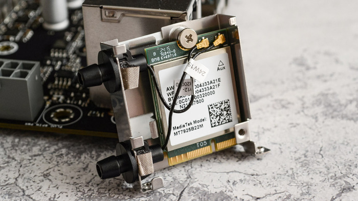 Проводная сеть обеспечивается контроллером Realtek RTL8125D, гарантирующим соединение на скорости до 2.5 Гбит/с. Беспроводной модуль представлен MediaTek MT7925 (MT7925B22M), который «умеет в» свежий стандарт WIFI 7 (6 ГГц, а также 5 ГГц и 2,4 ГГц).