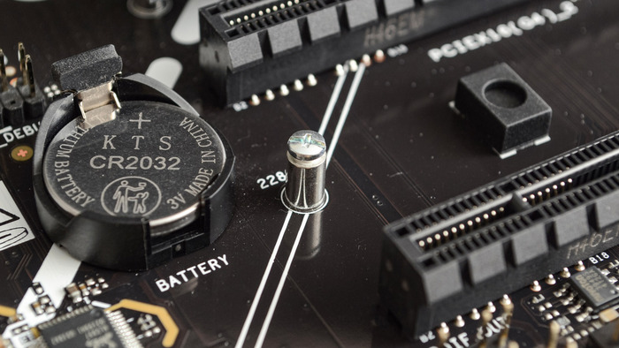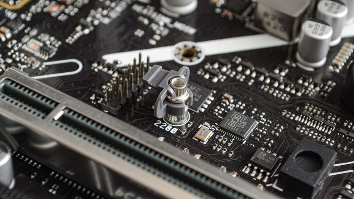 Лишь основной (верхний) слот для M.2-накопителя имеет «быстрый» крепеж Q-Latch. В остальных разъемах накопители удерживаются по старинке – винтами.