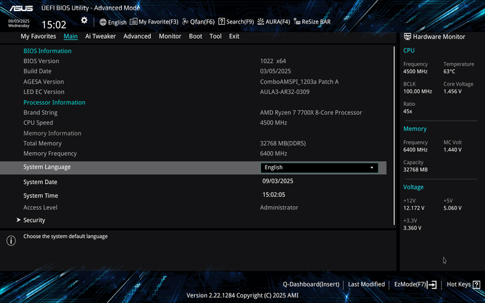 Внешний вид UEFI на этой плате полностью соответствует фирменному стилю серии Prime. Интерфейс выполнен в тёмных тонах с использованием белого шрифта и элементов синего цвета. По умолчанию система запускается в упрощённом режиме, но при нажатии клавиши F7 можно переключиться в расширенный режим с полным набором настроек.