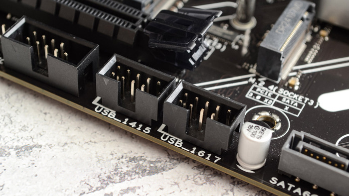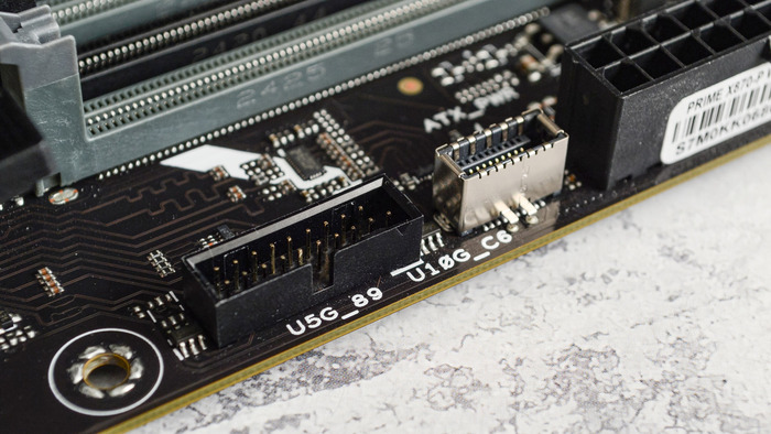 Вот тут хотелось бы видеть колодку для подключения корпусного USB-C стандарта 3.2 Gen2x2 Type-C (20 Гбит/с), но увы.