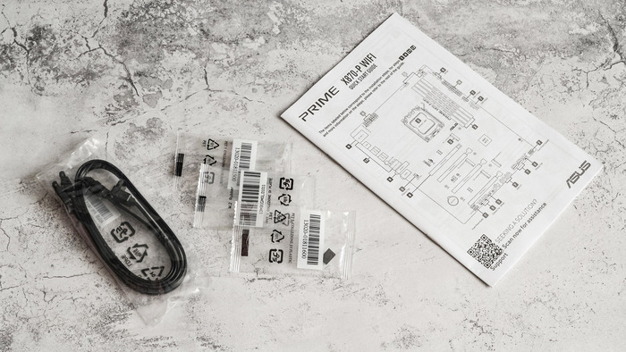 В комплекте — сама плата в антистатическом пакете, инструкция, пара SATA-кабелей, крепеж для M.2 накопителей, WIFI-антенна и стандартный набор документации. Комплектация не избыточная и даже скромна, но все самое необходимое присутствует.