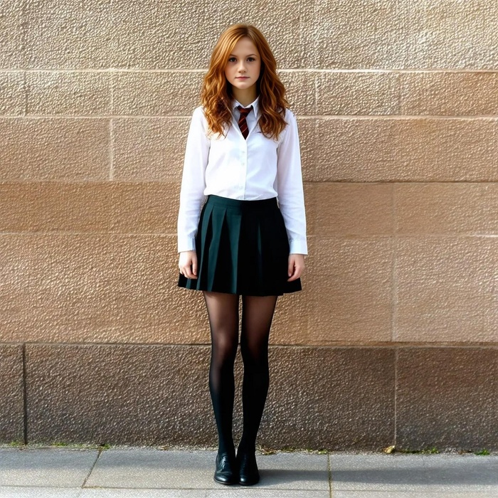 [моё] Контент нейросетей Арты нейросетей Арт Искусственный интеллект Нейронные сети 3D Женщины Девушки Шатенка Рыжие Гермиона Эмма Уотсон Джинни Уизли Бонни Райт Школьницы Колготки Мини-юбка Длиннопост Униформа Гарри Поттер