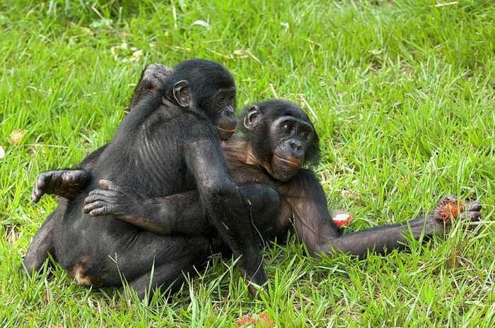 Хотелось бы поговорить о виде обезьян, которые почему-то очень мало выступают в публичном поле - это бонобо. Бонобо не просто приближены к человеку, а имеют настолько схожие черты, что в принципе как человек: