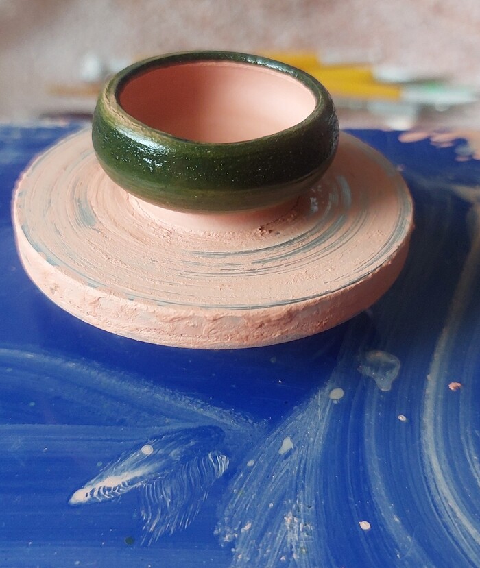 Кашпо сделано на гончарном круге, покрыто запекаемой краской с имитацией керамики+ сверху стекловидный лак.