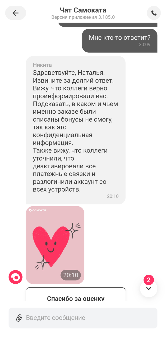 Пробую ещё пару раз спросить, отвечают то же самое и сразу закрывают чат и предлагают его оценить.
