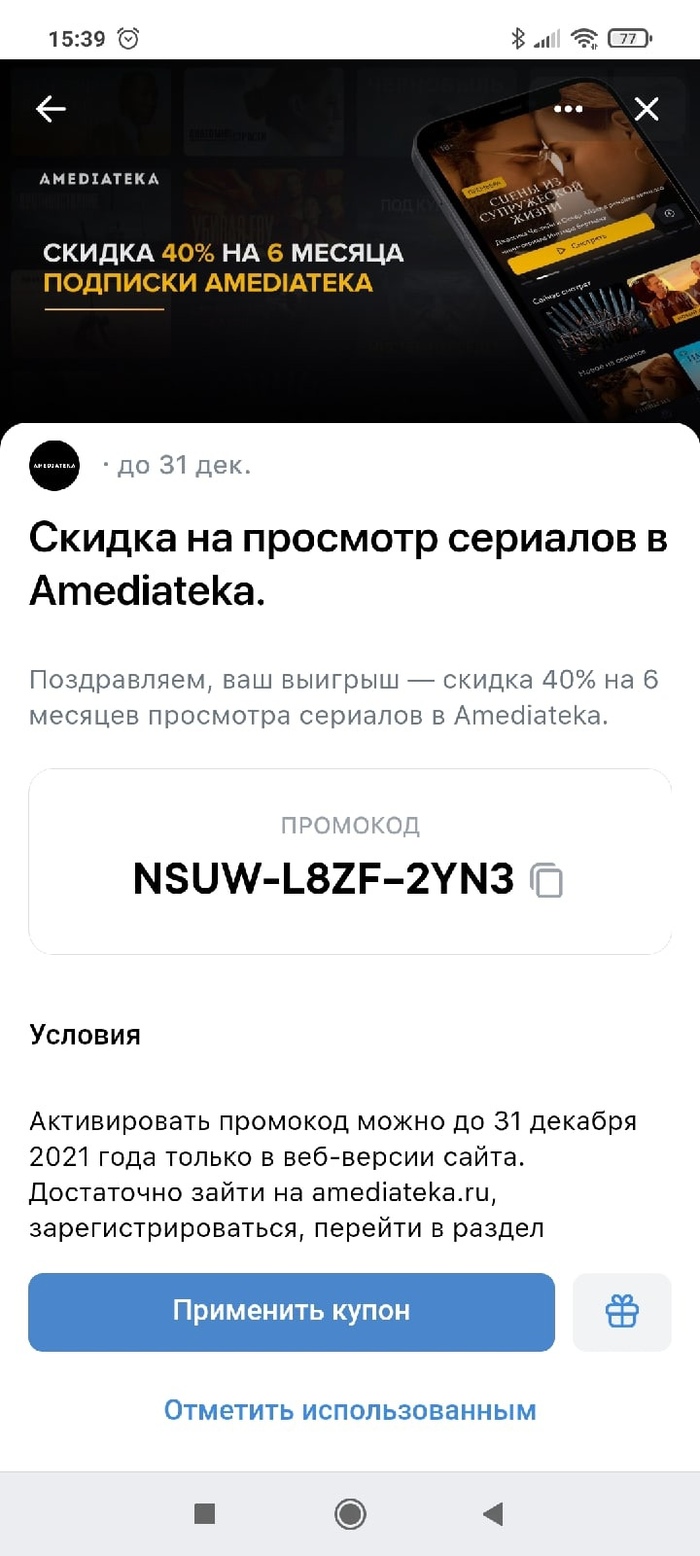 Выяснилось это при детальном рассмотрении чеков. Я еще удивился, а че раньше бонус-коды не давали? Бонус отдаю вам, кто пользуется данными сервисами - забирайте. Я торренты юзаю и ютуб. Надеюсь, сработает. Ибо под этой бумажкой начиналась уже моя покупка, без бонуса. Бонусы магазина зачислятся на карту тому покупателю, как я понял.