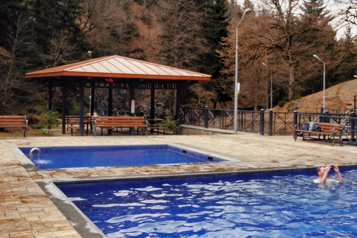 Также тут можно искупаться в бассейне с серной водой. Вообще они работают с 7 утра до 8 вечера, но у нас получилось искупаться и ночью, когда никого не было. Мы заплатили охраннику стандартную цену за проход и купались одни под звездным небом. Правда в этой авантюре есть один нюанс. Для того чтобы добраться до бассейнов, нужно пройти порядка 3 км. вверх по ущелью, и по пути не будет ни одного фонаря(но у нас всегда с собой имеются ручные). Местный житель сказал, что нам сильно повезло, так как в ущелье не редко встречают диких зверей, типа волков и медведей.