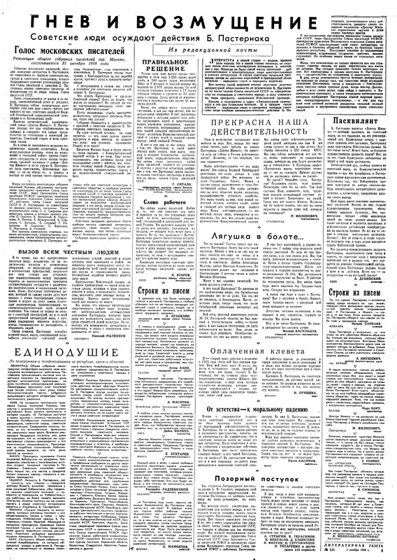 Письмо читателя Филиппа Васильцева, напечатанное в «Литературной газете» 1 ноября 1958г.