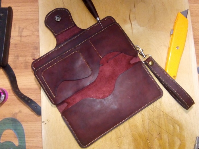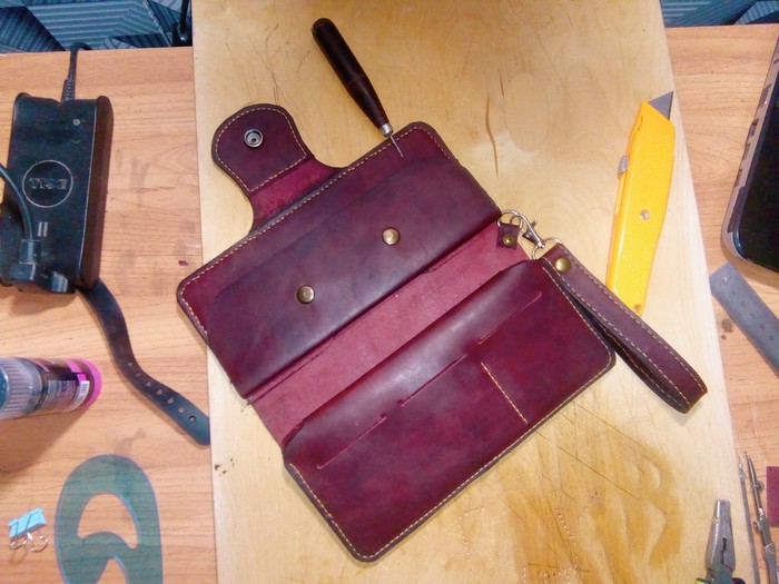 Моя первая большая и сложная (в отличии от предыдущих) работ. Занимаюсь всего год, делал по мелочи портмоне, лонгер, ошейник...а тут решил попробовать большой клатч)