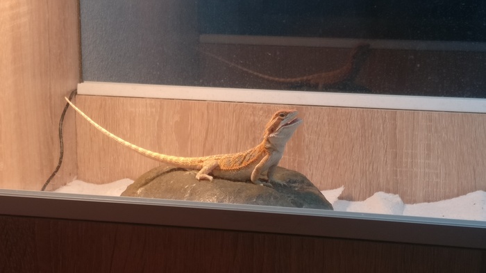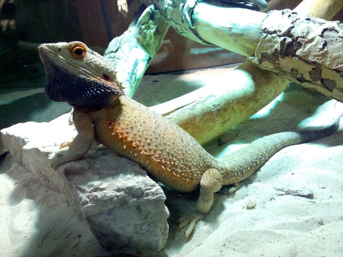 Знакомьтесь, это бородатая агама или же если дословно перевести, то бородатый дракон. Описывать что за зверь не вижу смысла, все умеют пользоваться гуглом. Да и тэги оставлю в конце статьи, тут уже писали о них. Скажу лишь то, что считаю данное животное идеальным домашним питомцем.