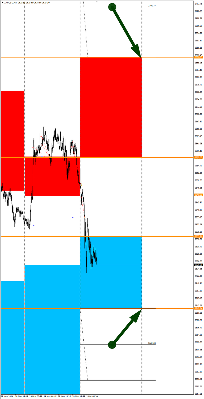 По Золоту сегодня вероятность 53% к закрытию дня закрыть день ниже цены открытия дня 2695,87.
