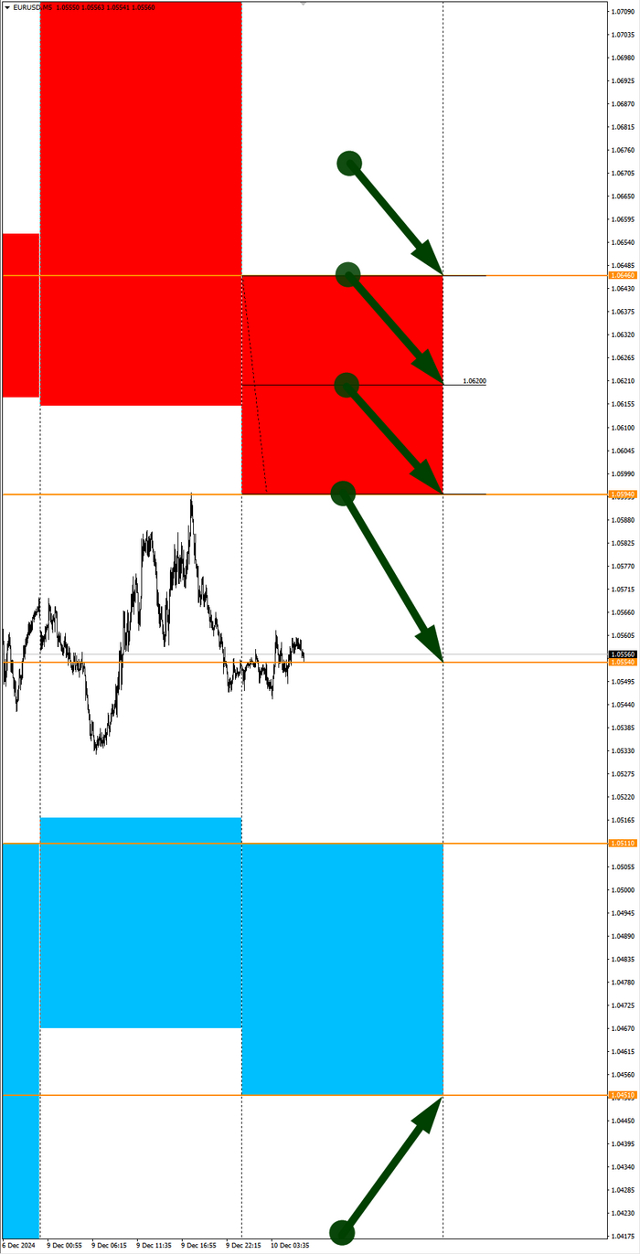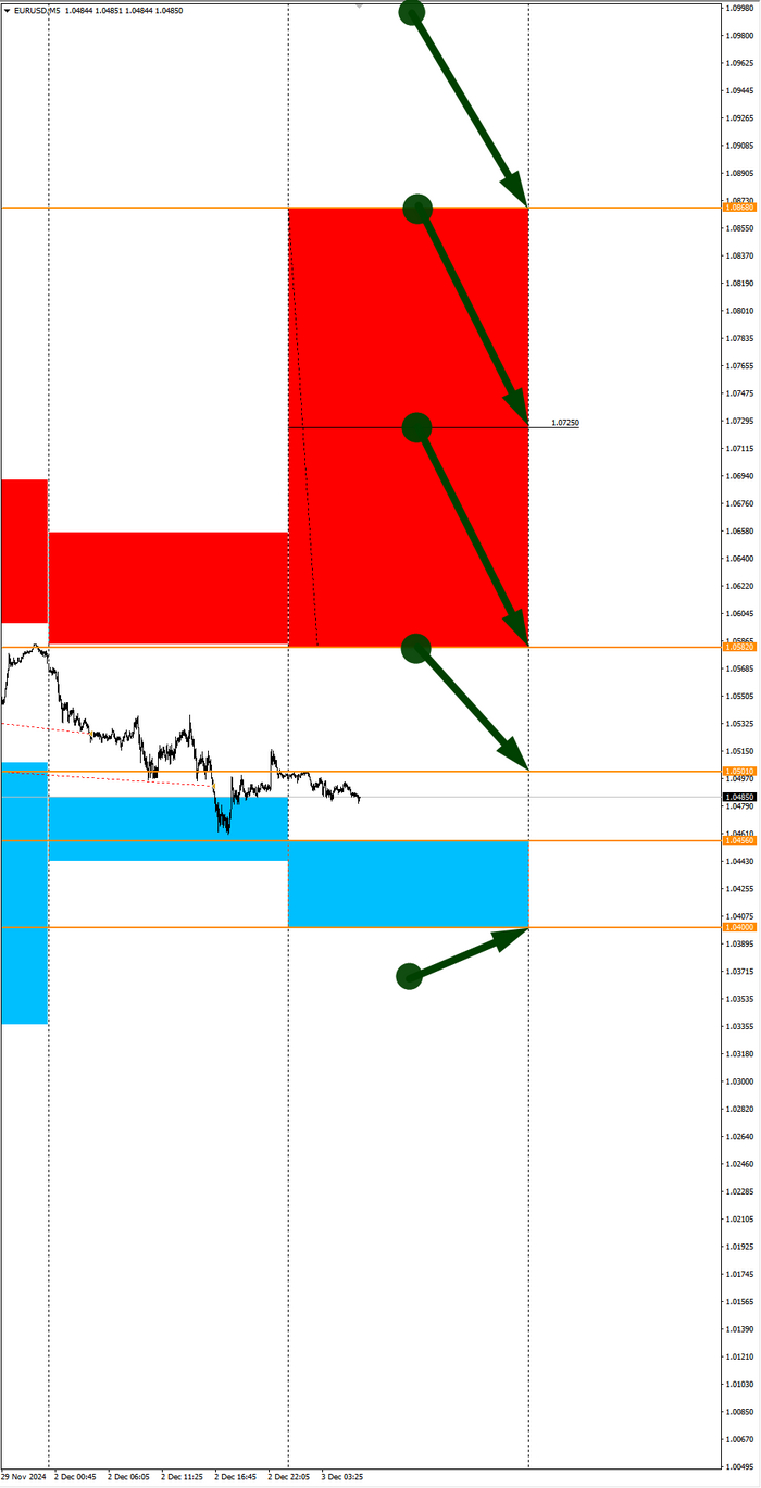 Зона покупок 1,0485-1,0384. Но новые покупки ожидаем под синим блоком с целью в его нижнюю границу 1,0384. Торговый объем в покупках сокращаем раза в 4.