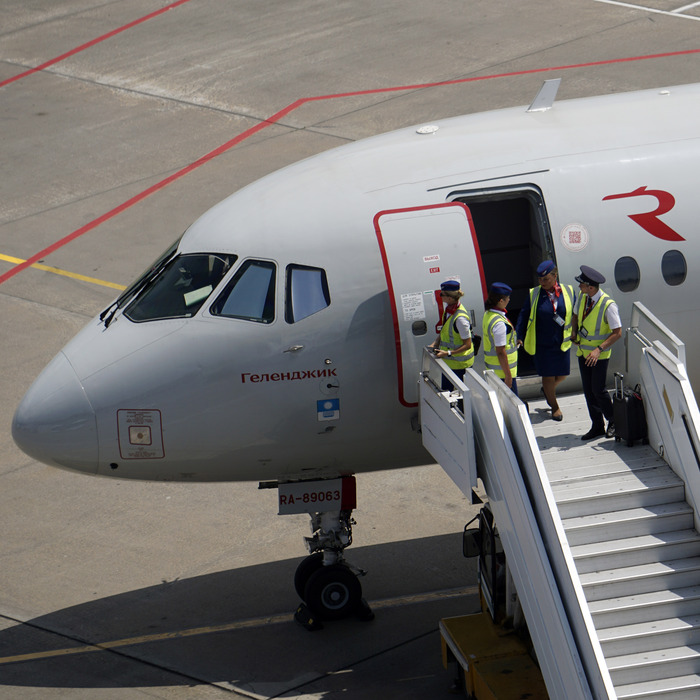 Саша прячет зубки и усиленно их никому не показывает - в хвостовой части самолёта наступает тишина.