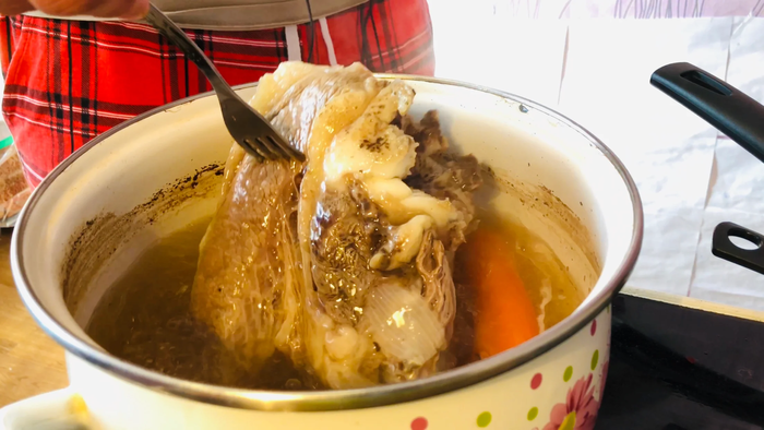 После закипания можно слить воду, промыть мясо, заново залить холодной варить и после повторного закипания варить 2-3 часа. Благодаря этому сойдет кровь и белок, и бульон получится чистым и прозрачным.