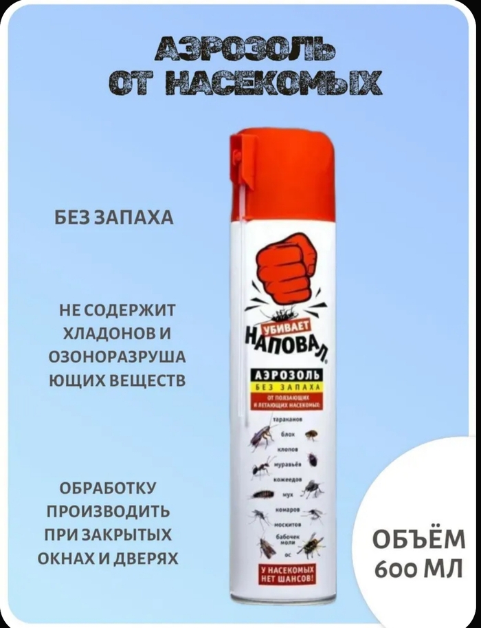 Холодный туман – базовый метод. Инсектицид распыляется в виде аэрозоля, проникает в щели, убивает взрослых особей.