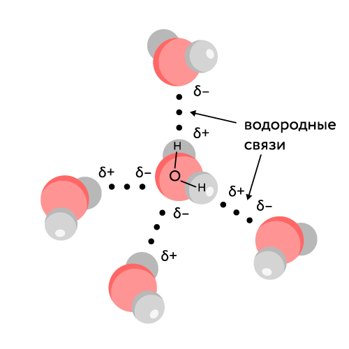Она возникает между молекулами, в которых есть атом водорода, соединённый с маленьким, но очень электроотрицательным атомом - кислородом (O), азотом (N) или фтором (F). Из-за разницы в электроотрицательности общая электронная пара сильно смещается к кислороду (или фтору, или азоту). Водород практически теряет свой электрон и становится "голым" протоном с большим положительным зарядом. Этот положительный заряд начинает сильно притягиваться к отрицательному заряду атома кислорода (или фтора, или азота) соседней молекулы. Получается, молекулы как бы "держатся" за руки друг с другом (экспериментально - выяснили, что они по 5 или по 6 штук в таких мини-хороводах). Отсюда и все её "уникальные" свойства.