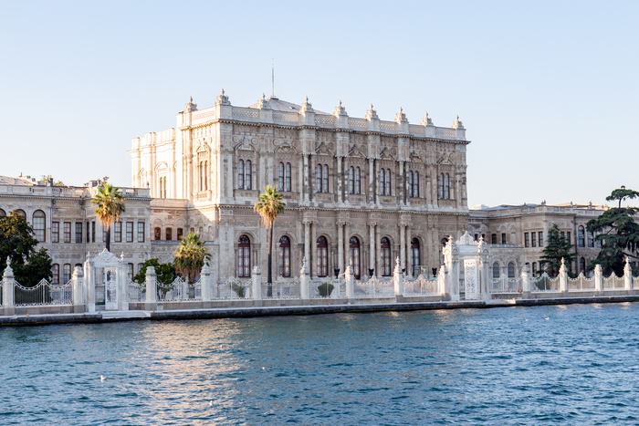 Прекрасный вид открывается и на сам Dolmabahçe. Долмабахче — дворец османских султанов. Был построен в 1853 году, как более современная альтернатива дворцовому комплексу Топкапы. Именно тут умер Ататюрк.