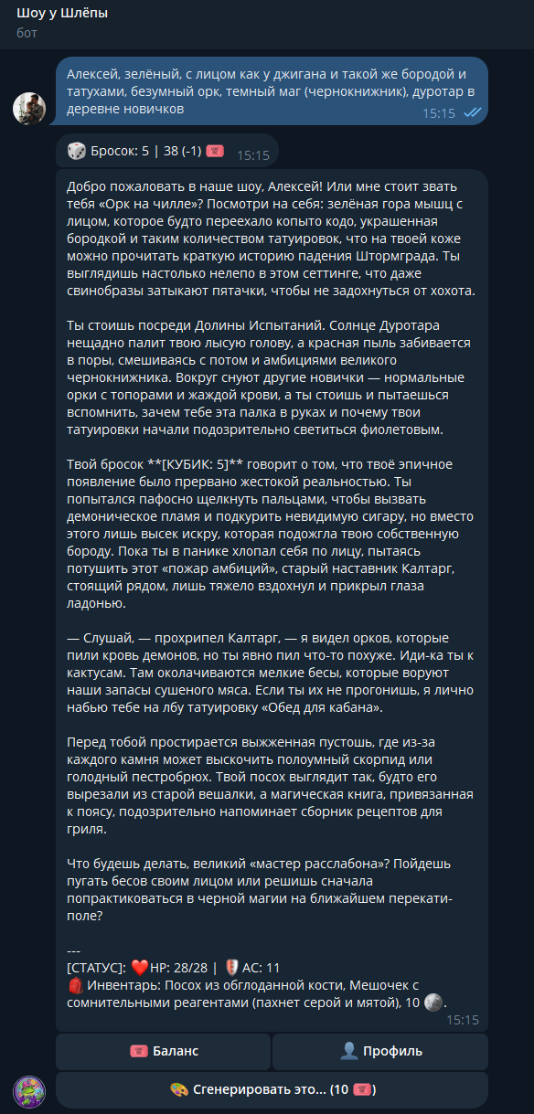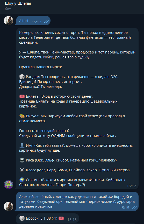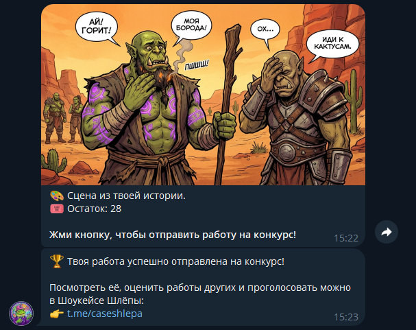 Telegram-формат удобен ещё и тем, что история чатов сохраняется, можно легко вернуться к прошлым генерациям и поделиться результатом в пару кликов.
