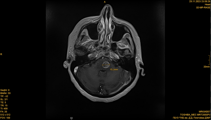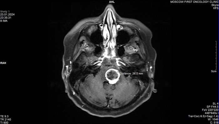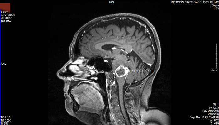 Как бы то ни было, заключение было следующим (текст сохранён): "По данным МРТ головного мозга с к/у от 24.01.24 пло сравнению с МРТ от 29.11.23- увеличение размеров очага в стволе головного мозга до 2, 6х2, 5х2, 4см (ранее-1.3х1.6х1.5см)... Рекомендована консультация онколога на предмет назначения лекарственной терапии (темозоломид± бевацизумаб). Врач-онколог. На предварительном заключении та-же фамилия значилась за "врач-радиотерапевт". Но это, наверное, не важно.