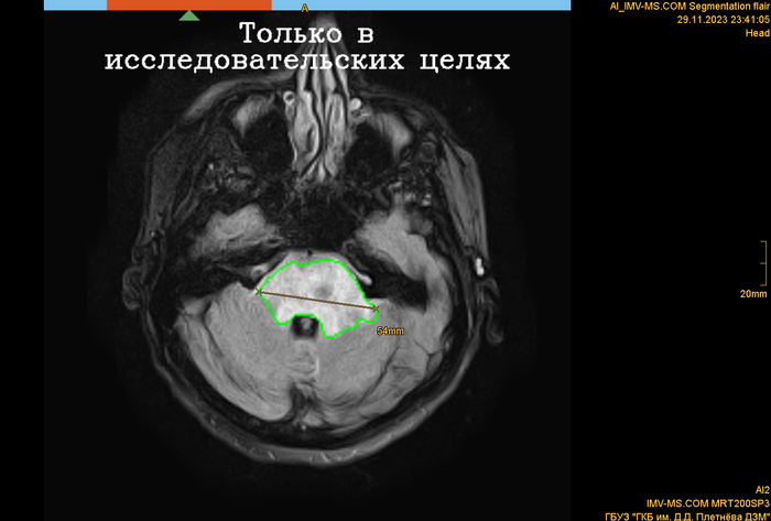 Вторая картинка - МРТ с отметкой, как я понимаю, повреждённых тканей. Удивительно, что такое большое пространство отмечено.