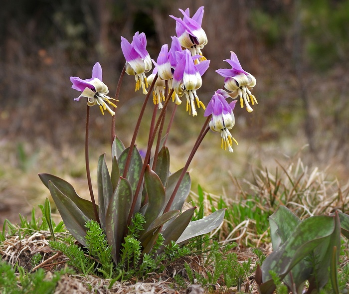 Как только в кедровых лесах на Алтае сходит снег, там расцветают поляны кандыка сибирского (Erythronium sibiricum). Название этого цветка заимствовано из тюркского, где означает "собачий зуб", что связано с конической формой луковиц.