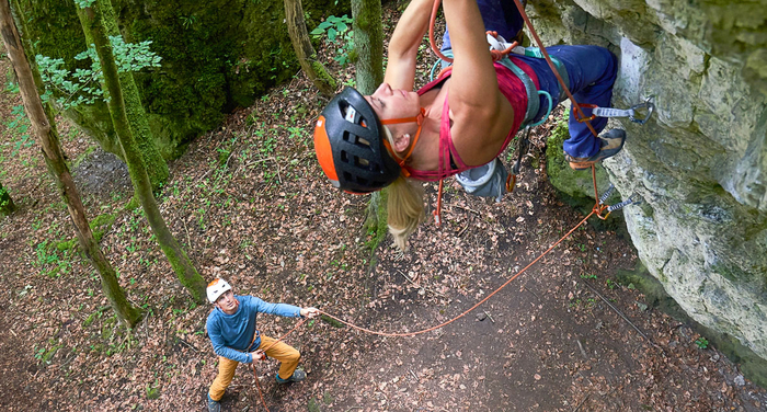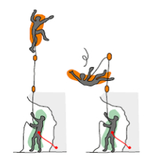 Если скалолаз срывается вниз, то летит он до самой верхней страховочной точки плюс ещё такое же расстояние, пока верёвка не натянется, и молится, чтобы страхующий не прощёлкал этот момент и страховочная точка выдержала этот срыв.