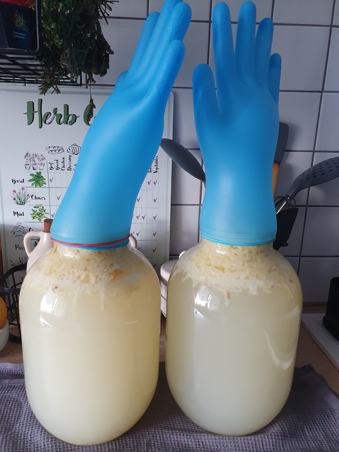 -Надеваем на банку перчатку и оставляем на сутки при комнатной температуре. (!чем больше время, тем алкогольнее квас)