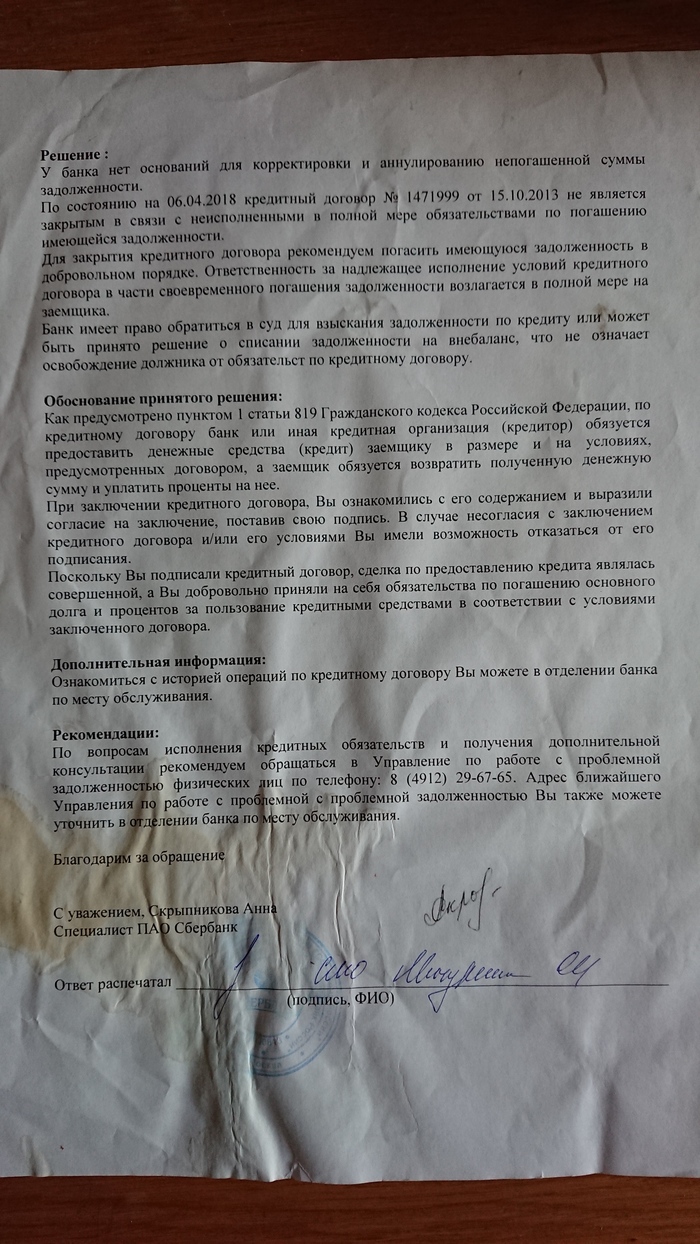 Имел я радость взять кредит в этом чудном банке в 13м года. Ну в общем молодо зелено, кредит я закрыл в 16м году исполнив в полном объеме судебное решение по этому договору. Остались начисленные банком проценты с момента подачи иска до вынесения решения (к взысканию не предъявлялись).