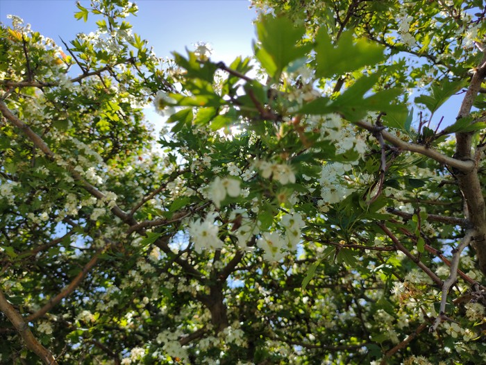 Наткнулся по дороге домой на растение, которое не смог узнать. Яндекс по фото определил, что это боярышник. Теперь буду знать где его искать, если соберусь делать настойку.