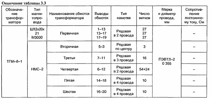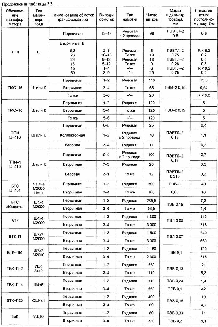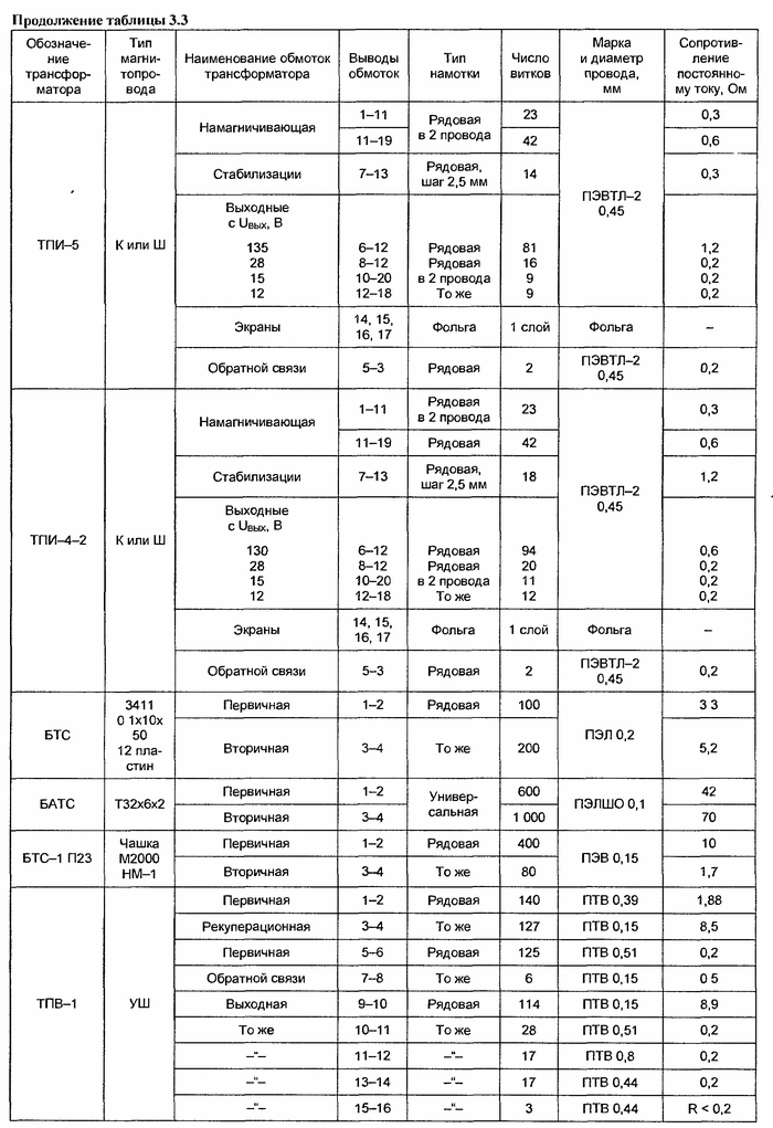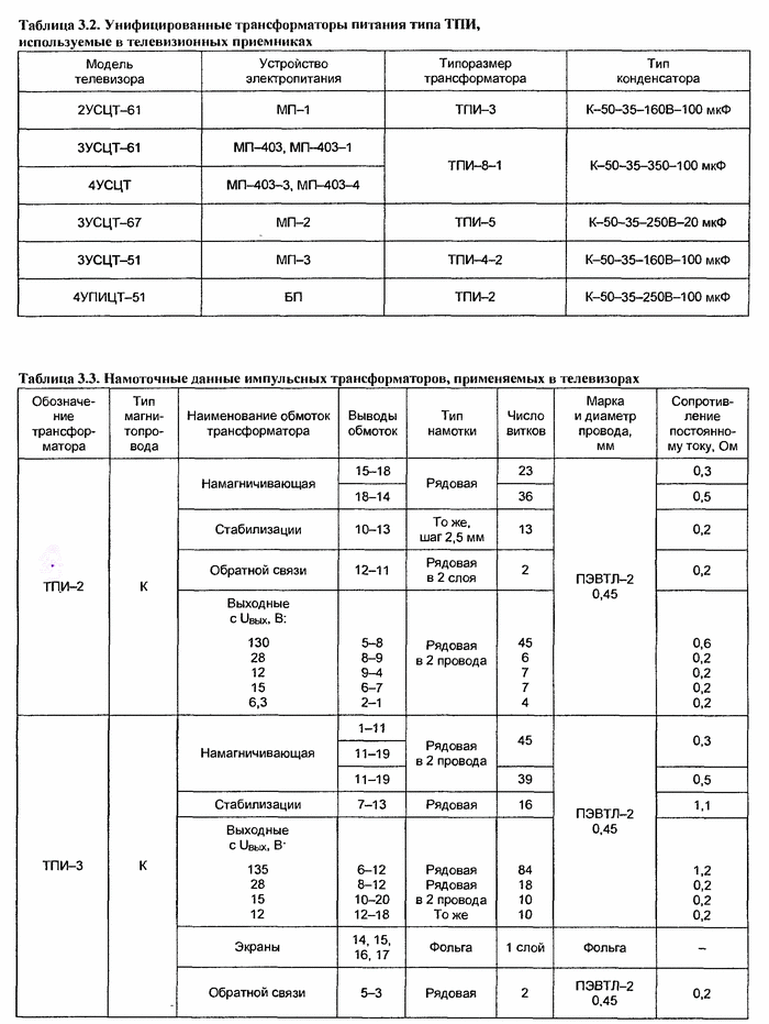 Характеристики трансформаторов ТПИ от импульсных блоков питания советских телевизоров