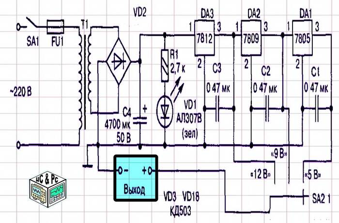Все это возможно неплохие варианты, но не претендуя на оригинальность, я предлагаю сделать специальный блок питания самостоятельно. Тем более, на основе приводимой мною схемы можно сделать и блок питания другого назначения.