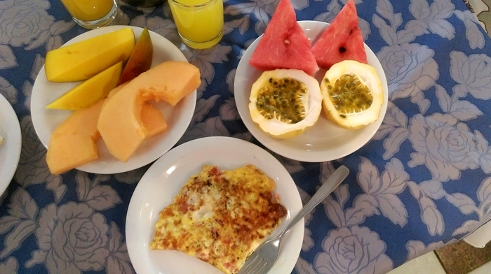 Блюда очень разнообразные, завтраки типичные (яичница, тапиока, много фруктов), на ужинах добавляют блюдо дня.