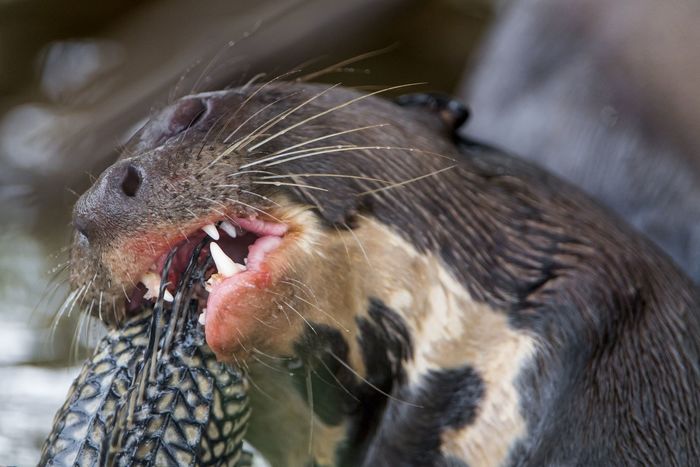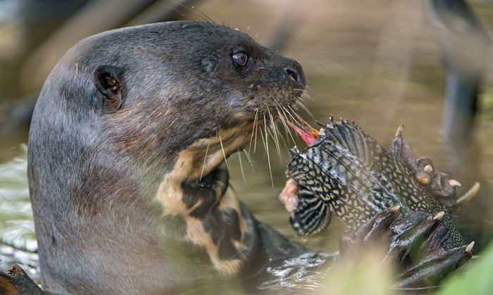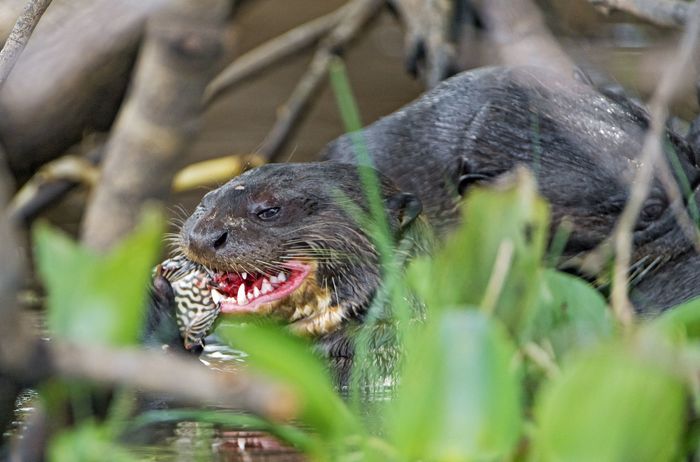 Бразильская, или гигантская речная выдра – храбрый и ловкий хищник.