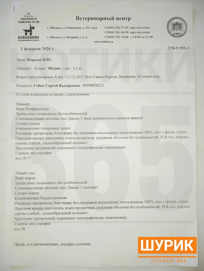В клинике провели полный осмотр: проверили давление, проходимость слёзных каналов, прозрачность хрусталика и прочее.
