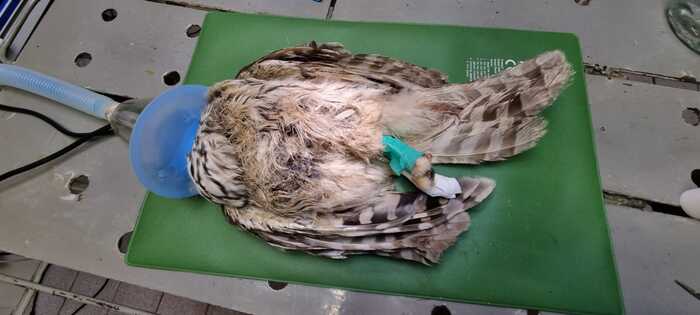 Сегодня навещали сову в клинике, уточнили что нужно из корма. Сова бодрая, лапка перебинтована. Уже клокает клювом, отгоняет, пугает. В ближайшее время постараюсь приобрести корм и завезти им.