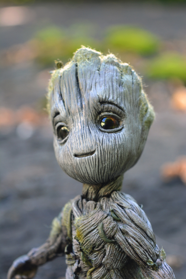Выполнен из полимерной глины. Глаза из стеклянных кабошонов, мох из шерсти (все таки моя стихия). Ростиком 14см)