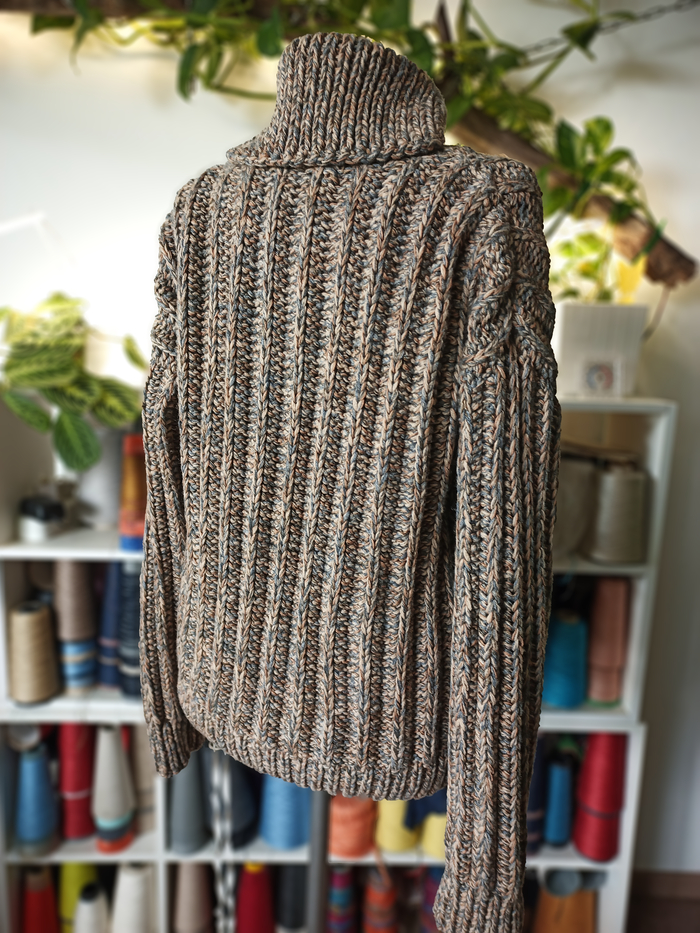 Свитер получается абсолютно неколючий, очень теплый, толстый и тяжелый. Есть нюансы в стирке, но там ничего страшного - стирать в мешке для стирки на режиме шерсть и сушить горизонтально.