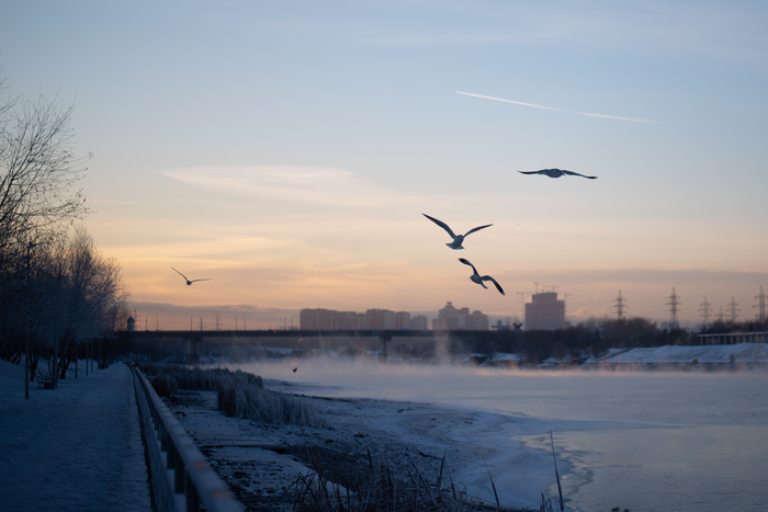 Вечером заметила туман над Москвой-рекой и на следующий день запечатлела это красивое явление.
